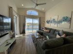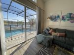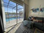 The redecorated family area, equipped with a large L-shape sectional sofa, ceiling fan, and dimmable lighting is a welcome pleasure after a busy day at the parks.