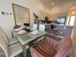 Lightwater Villa enjoys a spacious dining area including a breakfast bar and a beautiful glass dining table.