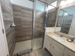 The third and fourth bedrooms share a bathroom featuring a glass-enclosed shower/bathtub.