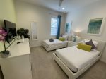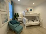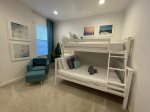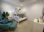 The third bedroom features two twin-size beds, while the fourth bedroom has a new twin over full-size bunkbed.