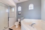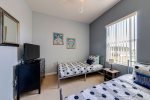 TWO Master bedrooms, one upstairs and one downstairs, with their own private bathroom with walk-in shower and soaking tub. The downstairs Master offers direct access to the pool/spa area. Twin rooms for children has a tv/dvd combo.