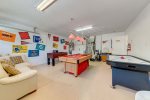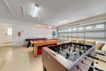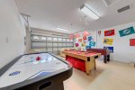 The garage has been converted to a games room with a pool table, foosball, and air hockey.