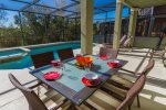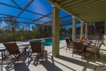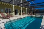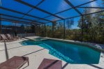 The pool is fully screened and has ample space, perfect for sunbathing.