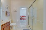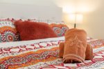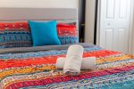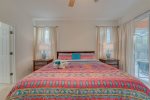 Our master bedroom has a king size bed, en-suite bathroom, access to the pool area.