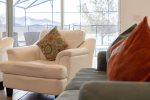 Looking out onto a conservation lake, it is perfect for relaxing in the Florida sunshine.