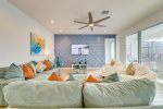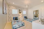 Tucked away on the top floor is second large family area, perfect for a movie night on the huge 75” UHD TV with Sonos sound bar, a DVD player, playing board games or just kicking back on the chaise longer to enjoy the stunning lake-view away from the bustle downstairs.