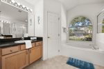 Master Bedroom: The master bedroom has a spacious, en-suite bathroom comprising a walk in shower, large bath, separate toilet, twin basins with vanity units, mirrors and a hairdryer. The bedroom has direct access to the pool area through french doors, a walk in wardrobe, a king size bed and a TV.