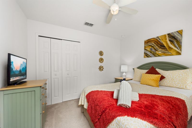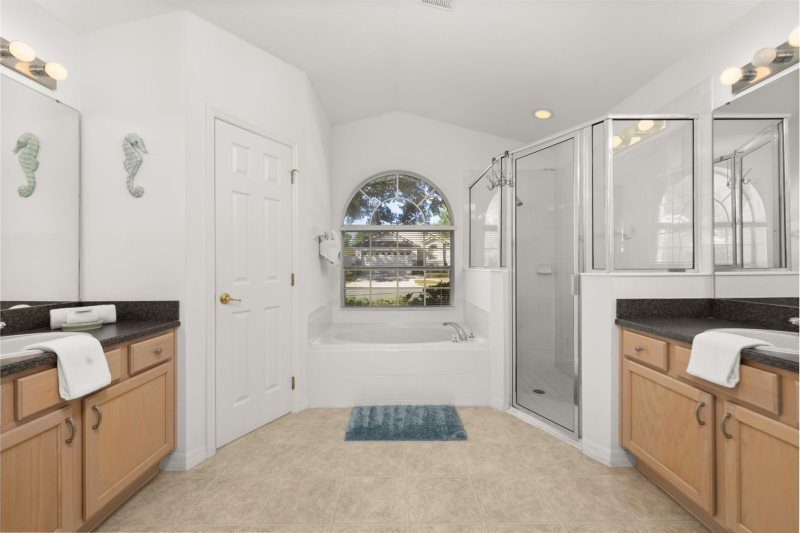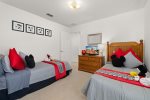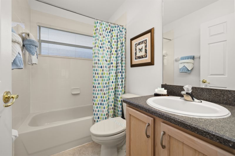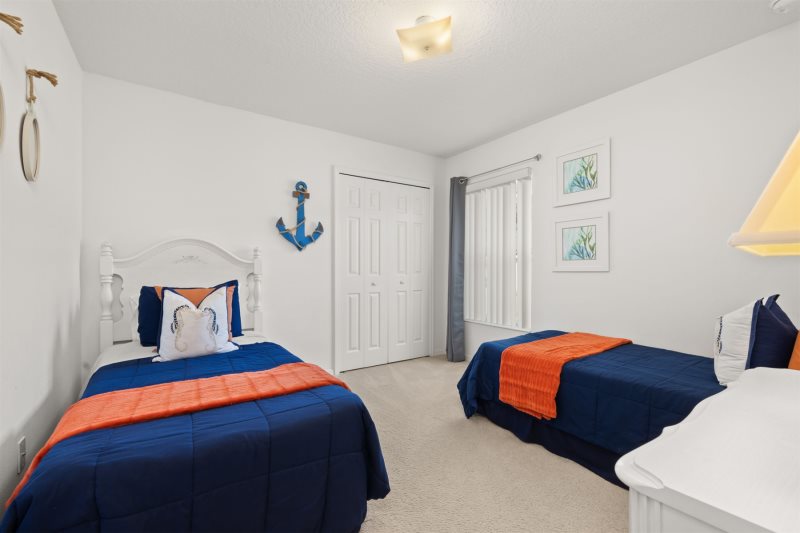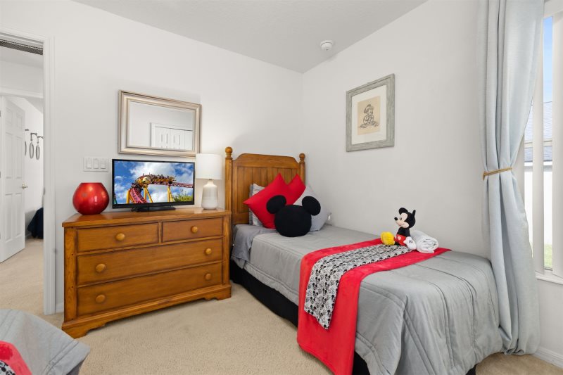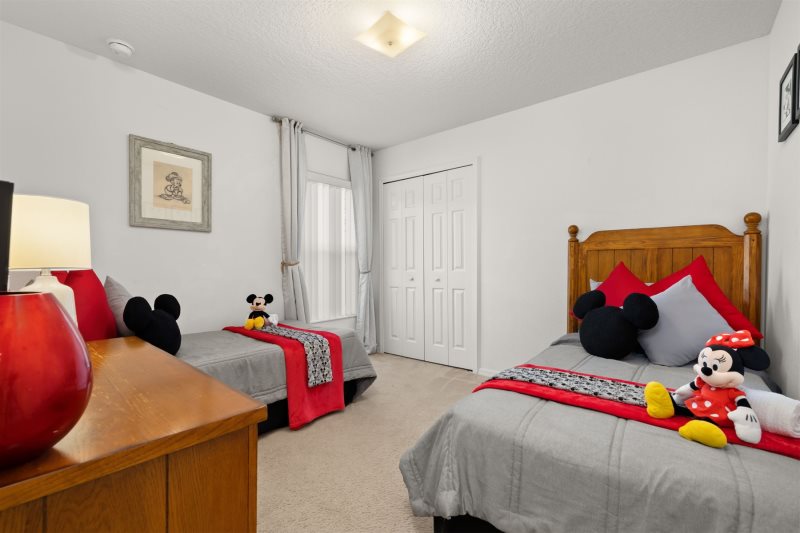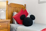 Twin Bedrooms: There are two twin bedrooms with access to a “Jack and Jill” bathroom with integrated shower. One of the twin rooms has a Mickey Mouse theme to delight little ones.