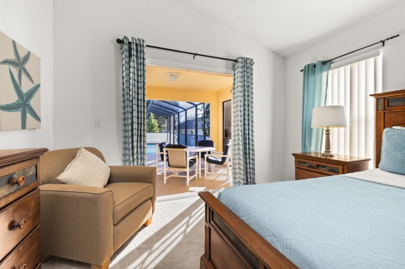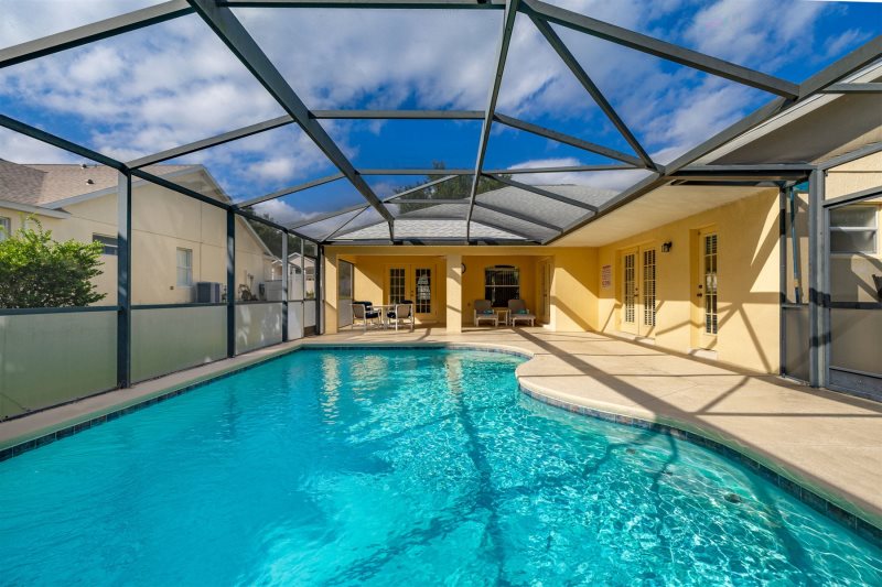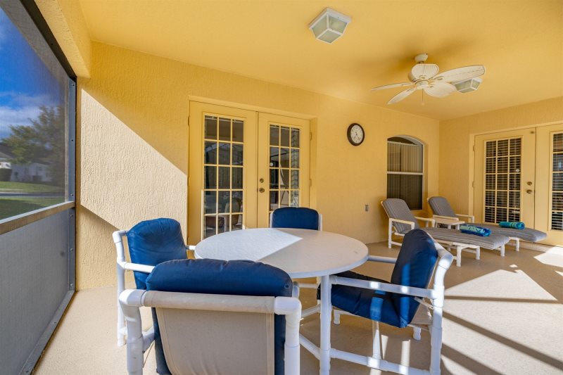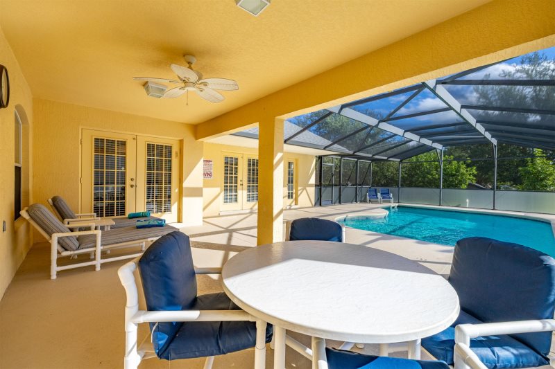Pool Area: The pool is south east facing and catches the sun all day long. There is a large double lanai which provides shade for sun loungers and an alfresco dining area. For your safety and security: The pool has a safety barrier all around.