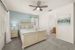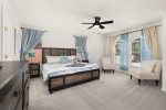 Master Bedroom Four has a Queensize Bed, closet, ensuite with washbasin, tub/shower and toilet, brand new 32″ Smart TV, and large chest of drawers and bedside cabinets.