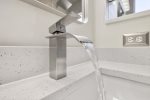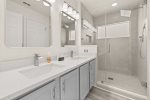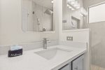 Master Bedroom One has a Kingsize Bed, large walk-in closet, ensuite with double washbasin, large walk-in shower and toilet, brand new 43″ 4K UHD Smart TV, and large chest of drawers and bedside cabinets.