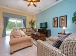 Family Room : Overlooking the pool with conservation views the lounge has been elegantly furnished with luxurious sofas, coffee table, rug, occasional tables and lamps. It is the perfect place to relax whilst enjoying the entertainment center. This features a 49" Smart TV with surround sound.