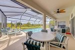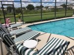 ~ Large Pool (Approximately 28 feet) and deck with lanai covering the full length of the back of the house and 50 inch LED TV