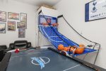 Family-Friendly Amenities: Enjoy gatherings in the family room and prepare meals in the fully equipped kitchen. Entertainment options abound with a fully equipped games room featuring a 7' pool table, air hockey, and a basketball hoop game. Relax