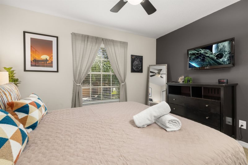 Accessibility Features: My Disney House has space for two cars on the ample driveway. Is wheelchair-friendly with ramp access, widened doors, and accessible facilities on the ground floor, ensuring comfort for all guests.
