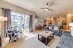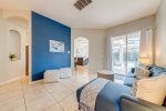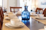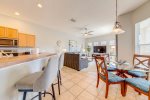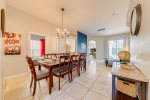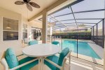 There is no shortage of dining seating either. You can enjoy your meal at the breakfast nook that seats 4, the dining table that seats 8, or around the pool at the patio table that seats 4.