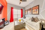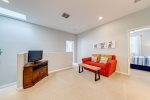 Both adults and kids will enjoy spending time in the cinema room, located on the first floor with its comfy sectional, bean bags, 65inch Roku TV, and Xbox 1.