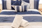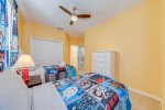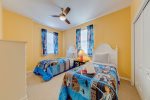 There are three additional bedrooms upstairs, one with a queen bed, and two with two twin beds each for a total of 5
