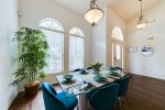A formal dining room, kitchen counter seating, and a breakfast nook table provide plenty of choices for enjoying a meal together.