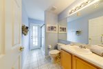 Bedroom 4 has a queen bed and an attached bathroom with shower.