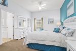 The master suite has an imposing king sized bed with wooden headboard, and matching sideboard, there are 2 bedside cabinets with lamps for bedtime reading.