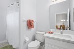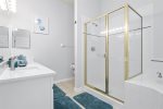 The oversized en-suite, his and hers sinks with vanity lighting, a bath and a separate large shower.