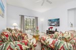 The living area has a 58 Inch HD LED Smart TV connected to cable providing over 100 channels of entertainment. If this is not enough, there is a DVD player and host of DVDs in our library.