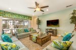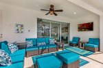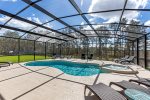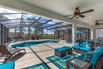 As you walk out of the living area to a grand, covered lanai and pool with spa, you will find the outdoor oasis you would expect in your dream vacation home.