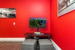 As you head to the second floor you will find a spacious light filled room with a generous seating area and large 65” TV and poker table, This second sitting room offers family and guests plenty of space to enjoy their favourite activities, or simply relax!