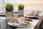 In unserer Küche finden Sie alles was Sie brauchen: Geschirr, Besteck, Gläser, Töpfe und einen Crockpot.