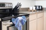 In our kitchen you will find everything you need: dishes, utensils, cups, pots, pans, and a crockpot.