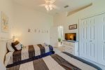 The second master bedroom hosts a queen size bed, perfect for either a single use with enough space or a couple. This bedrooom has it's own bathroom.