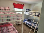 2 bedrooms with a queen size bed, 1 bedroom with 2 twin size beds & 1 bedroom with 2 bunk beds