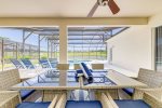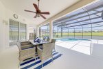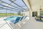 The generously expanded pool deck offers ample outdoor space, complete with four luxurious loungers and an eight-person dining table. Both the pool and spa are equipped with underwater lighting and can be heated at an extra charge during cooler seasons.