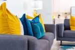 The formal living area, adorned with a 55-inch TV, Playstation console, and DVD player, ensures relaxation.