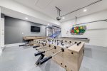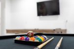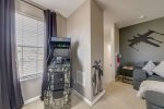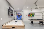 Our newly designed games room awaits your enjoyment, featuring upgraded epoxy flooring and Super Mario-themed walls. Engage in friendly competition with games of pool, foosball, air hockey, and basketball while watching TV.