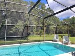 Privacy in the pool area too, with a view looking out over the beautiful woods behind the villa.