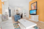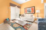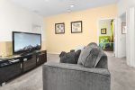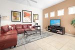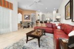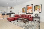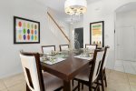 Our villa is 2895 sq. ft. two level Disney themed oriented that will make you want to come back every year. Upon front door entry, you will find foyer area motion lighted. No more looking for switches in the dark. First, you will see the formal dining area with a relaxing lounge area. We have a fully appointed kitchen for all your needs. Newer appliances. Refrigerator, dispenses crushed and cubed ice and filtered water, dishwasher, new electric glass top stove with overhead full size microwave. Sink disposal. Bar area with seating for three. Breakfast nook area,seating for 4, connected to larger gathering area. Washer and dryer located on the first floor.