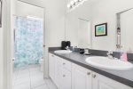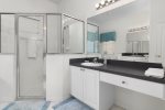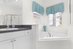Upstairs master is another king with its own bathroom and tub/shower.