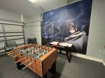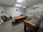 The garage is a game room with full size pool table, foosball, darts, and air hockey. Also In here you will find an extra full sized refrigerator if needed.