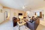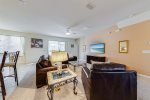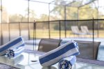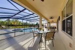 Our covered full-width lanai provides shade (great for little ones and ’shade-bathers') with ceiling fans and lights, should you desire to sit outside at any time in all weather. There is ample seating across two outdoor patio tables and a corner snug for relaxation with cushioned adjustable seating.