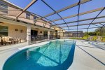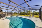 The enclosed extended pool deck and sheltered lanai (patio) offers beautiful rear views onto woodland and a small lake. The reserve is home to a variety of birds and local wildlife, which are a joy to watch.
