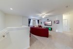 Upstairs you will discover a second lounge, also known as the family ‘loft’ area. You will find a large sofa with footrest for your