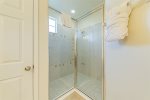 There is a convenient outdoor shower allowing guests to rinse-off before/after they’ve enjoyed a dip in the pool and spa. Located by the back-door, this gives direct access to the ½ bathroom (WC) so you can dry off before entering the main house. Pool towels are provided in the adjacent utility closet for ease.
